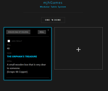 Every adventurer has a bag, but they don't have this bag. The Endless Bag of Holding d100 DLux is the definitive loot and utility expansion for the mjhGames Modular Table System (MTS 3.0).