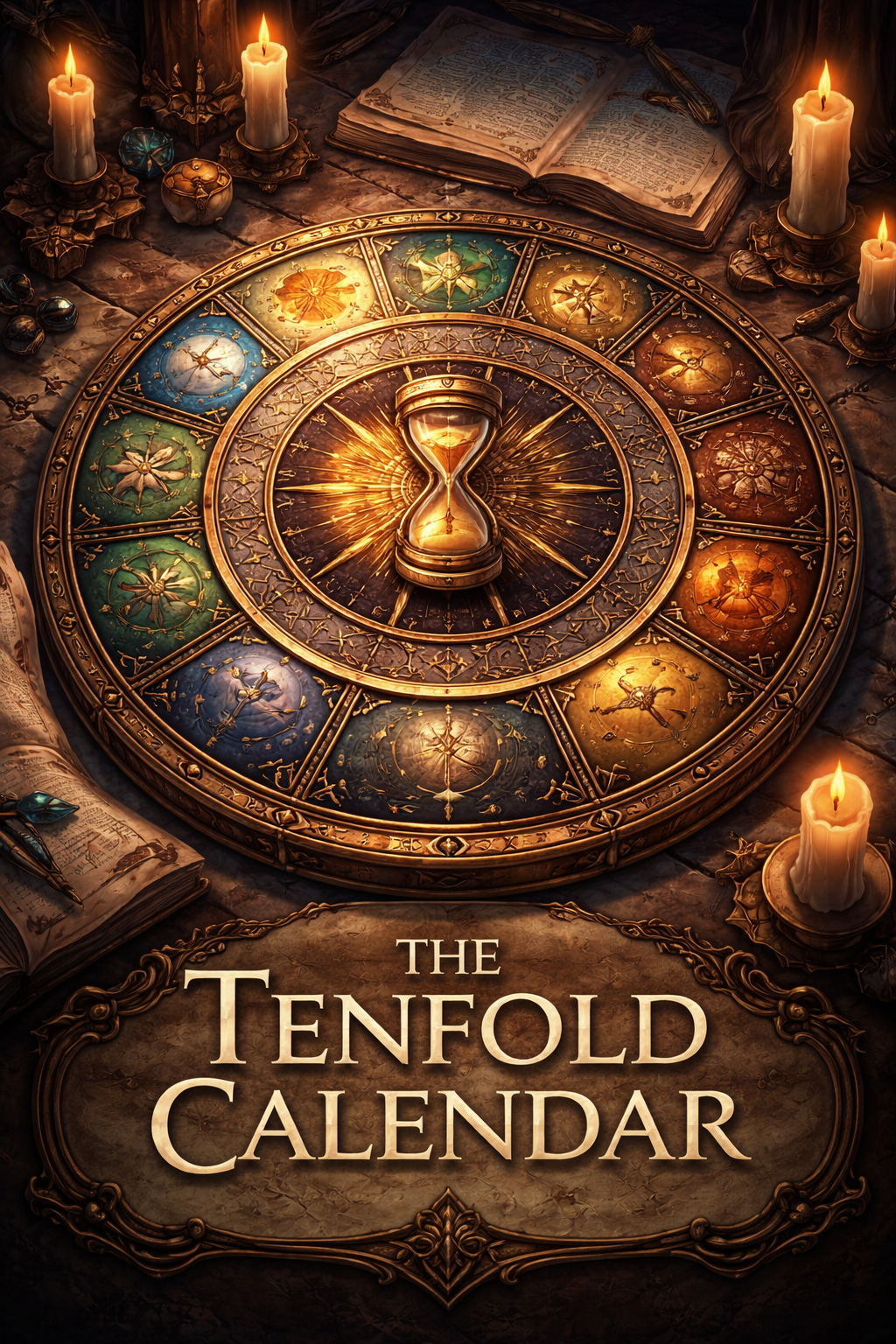 Step into a fully realized, internally consistent time system designed for storytellers, tabletop gamers, and world-builders. The Tenfold Calendar isn’t just a calendar—it’s a framework for adventure, culture, and strategy.